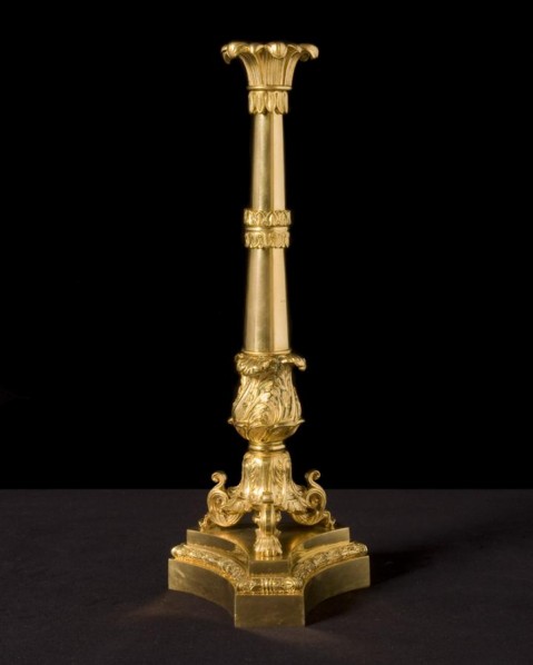Empire gilt bronze candlestick lamp, Italy late 19th century.