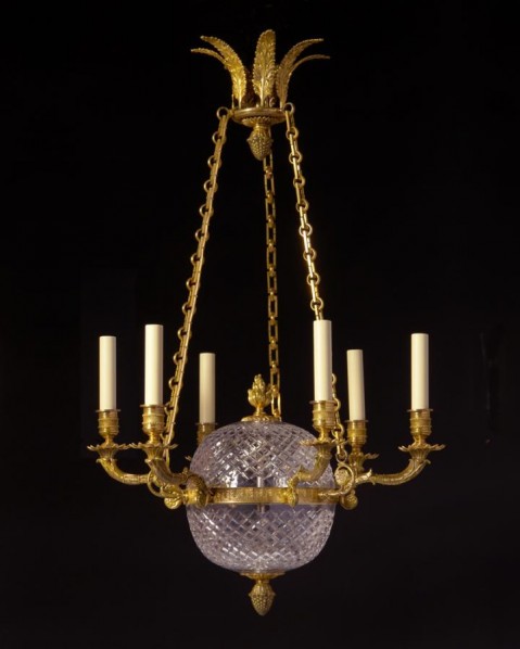 EMPIRE Style cut crystal and gilded bronze six light chandelier