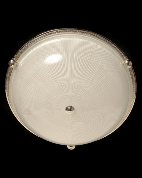 Nickeled bronze and ribbed glass flushmount with button, four lights