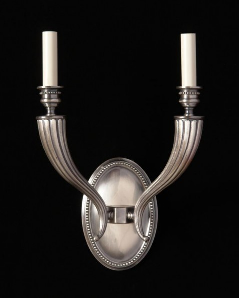 ART DECO Style nickeled bronze two light sconce with reeded arms