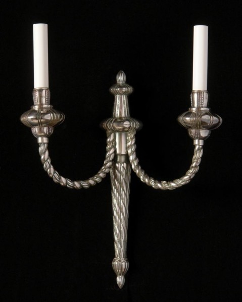 LOUIS XVI Style rope twist silvered bronze two light sconce