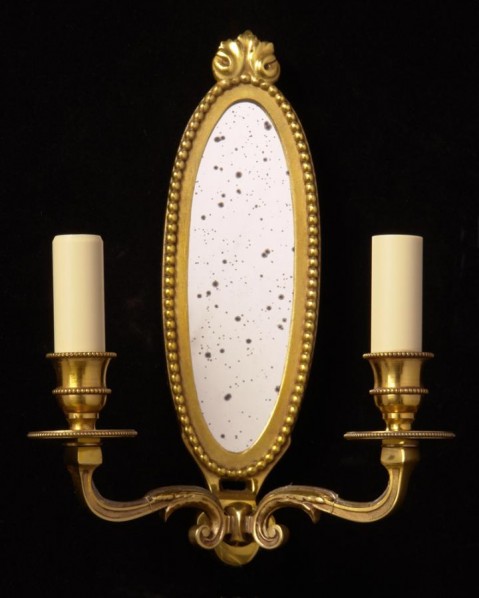 LOUIS XVI Style gilded bronze and mirror back two light sconce