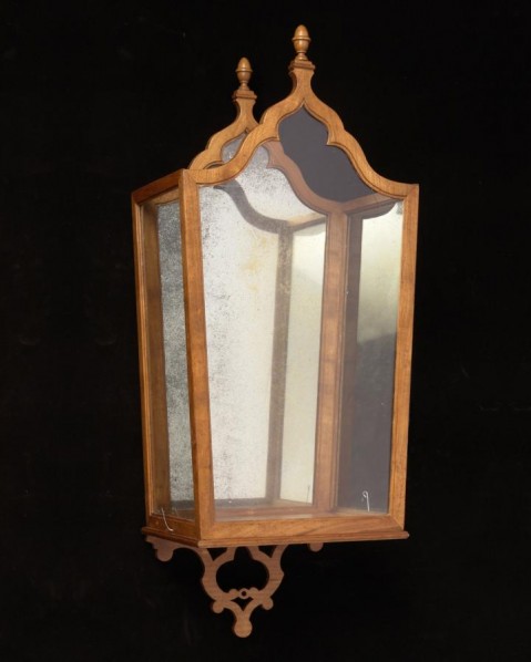 Cherrywood, antique mirror and glass sconce