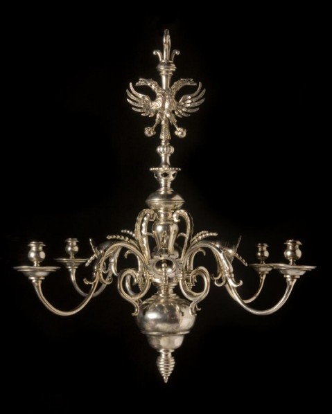 Dutch silvered bronze four-light chandelier, Late 19th century