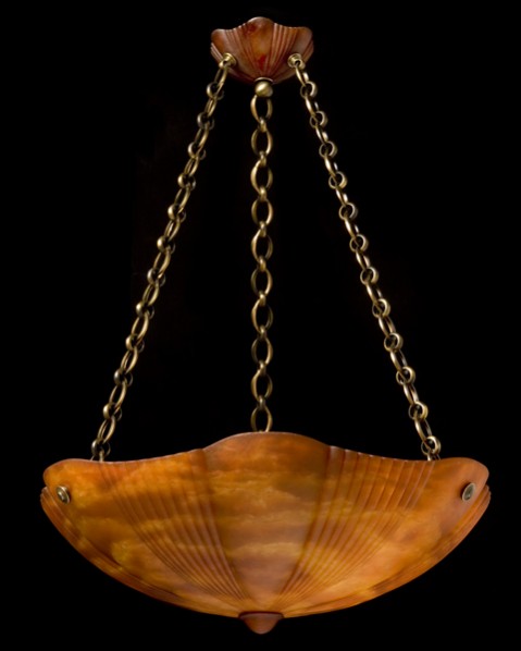 "ELICA" carved alabaster pendant, wired