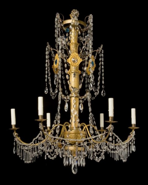 Louis XVI style Genoese giltwood, gesso and crystal six-light chandelier, Italy, circa 1860