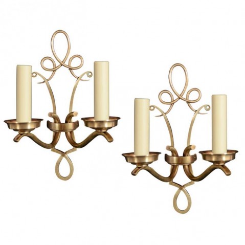 Polished Brass Two Light Sconces With Scroll Designed Backs By Arbus, France, Circa 1940