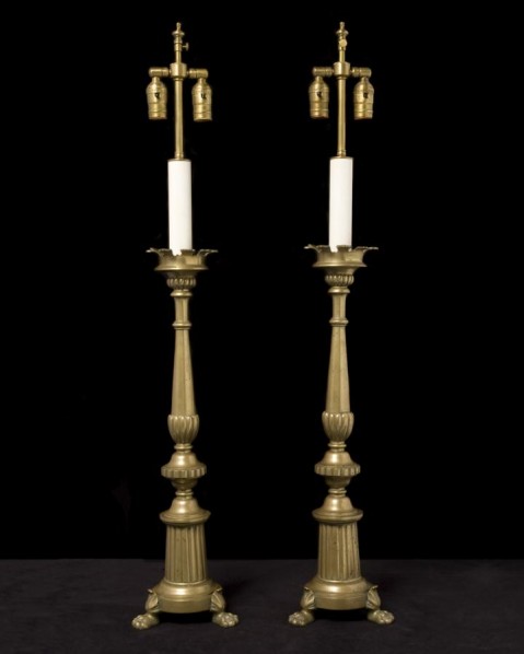 Pair of bronze pricket candlestick lamps, Italy, mid 19th century.