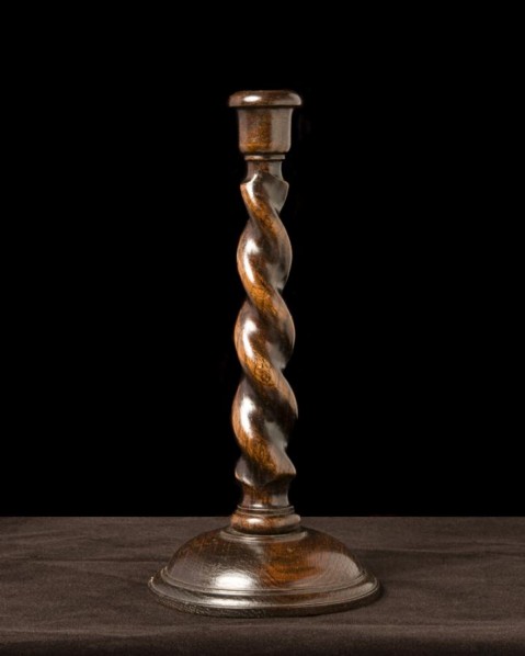 Carved Oak twist candlestick, England late 19th century. To be custom wired.