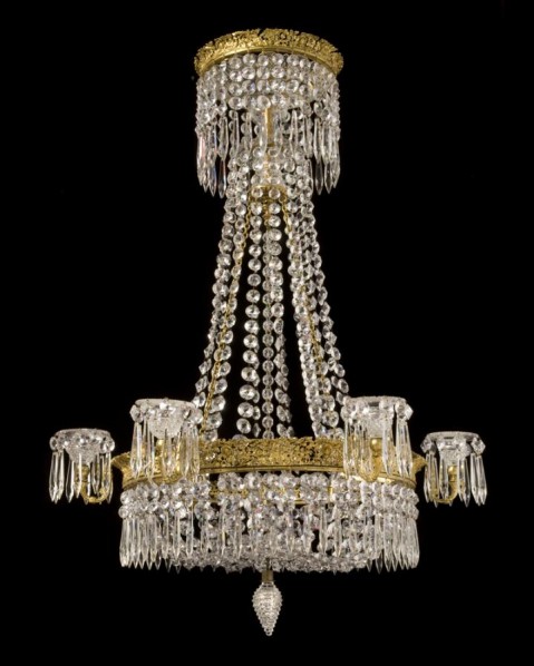 Regency style gilt bronze and cut crystal six-light chandelier, England mid 19th century