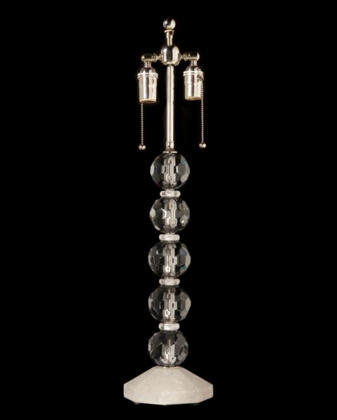 "CRAWFORD" faceted gray crystal balls with rock crystal base and disks, wired.