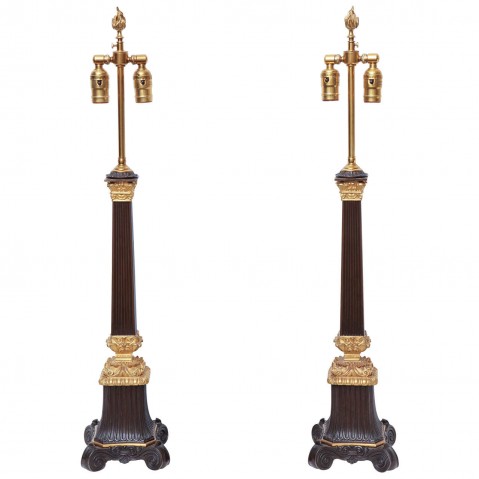 Pair of EMPIRE black and gilt bronze lamps, France, circa 1830
