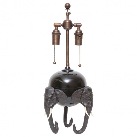 Elephant motif brass and polychromed spelter table lamp ,Denmark midcentury