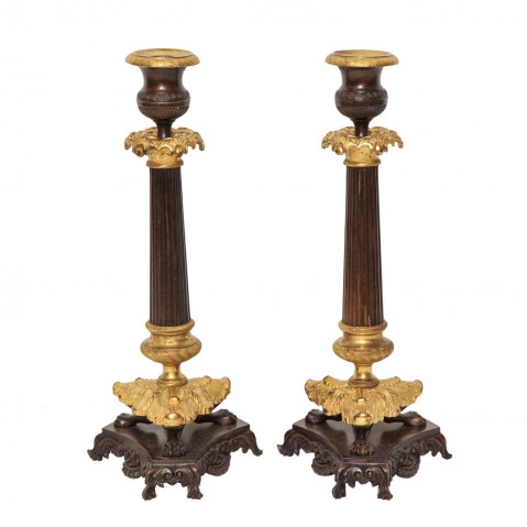 Louis Philippe Black and Gilt Bronze Candlesticks