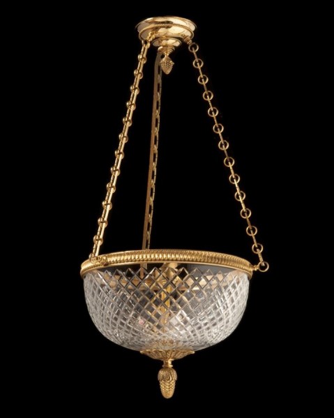 Gilded bronze and cut crystal three light pendant