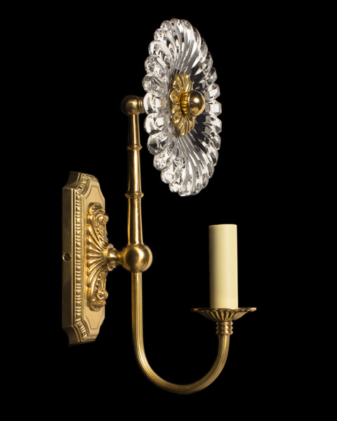 GERBER Gilt bronze and cut crystal one light sconce with ribbed arm, wired.