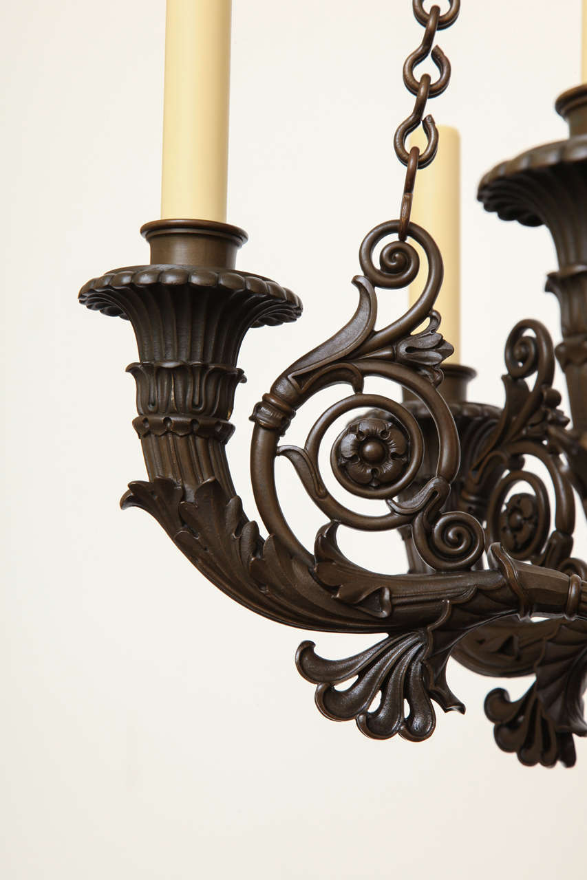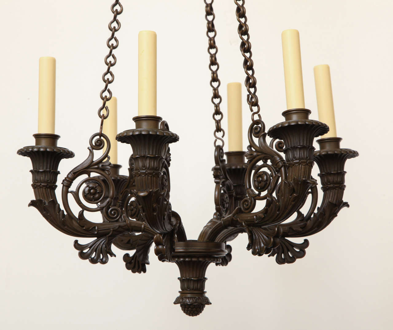 Louis Philippe patinated bronze six light chandelier,France, 19th century