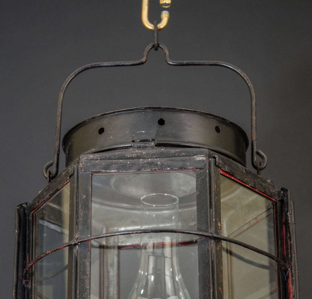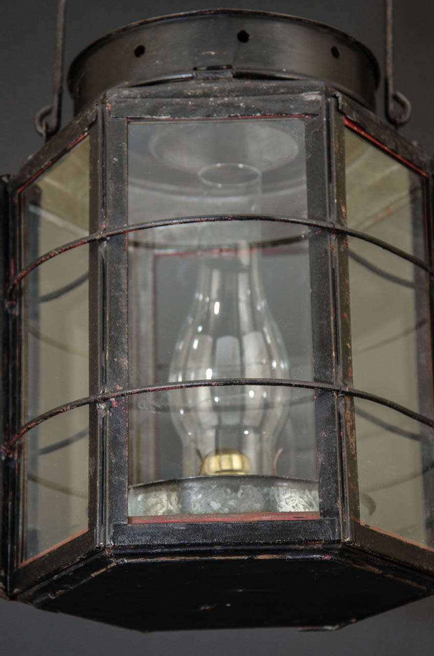 Polychrome iron and tole ship mast lantern, signed L E Andrews & Co