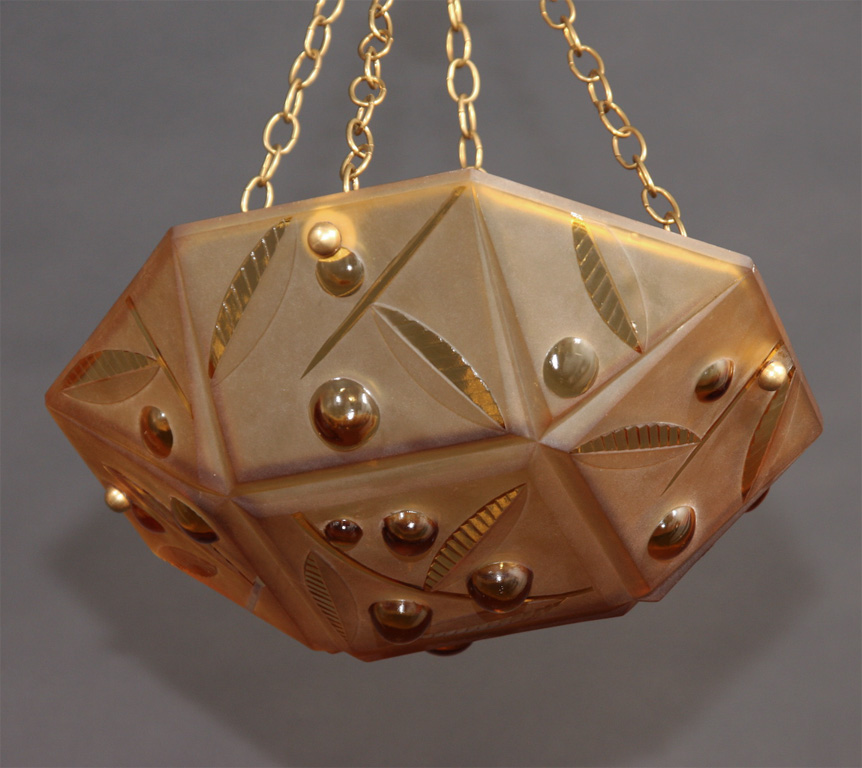 Art Deco molded glass pendant, France circa 1930